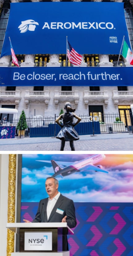 Con esta colocación en la Bolsa de NY, Aeroméxico entra a un reducido grupo de aerolíneas globales que cotizan en Wall Street, un distintivo asociado únicamente a empresas con altos estándares de transparencia, operación y desempeño económico.